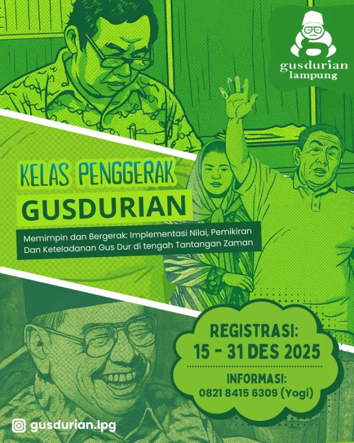 Sebagai informasi, pendaftaran Kelas Penggerak GUSDURian Lampung dibuka mulai 15 hingga 31 Desember 2025.