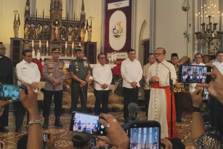 Di hadapan para umat Kristiani, Menko Polkam Djamari Chaniago menyampaikan ucapan selamat Natal. Pemerintah berkomitmen untuk terus menjaga jalannya ibadah agar berlangsung dengan tenang dan aman.