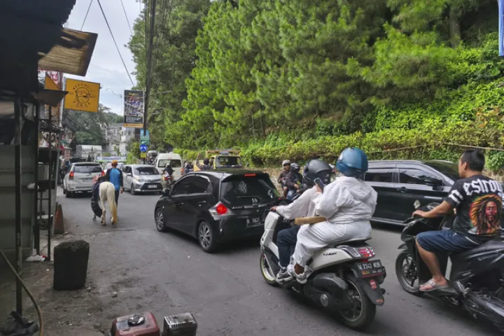 Banyak kendaraan bermotor baik roda dua maupun roda empat dengan pelat nomor dari luar Bandung seperti ‘B’ dan ‘E’ turut memadati lokasi wisata favorit masyarakat selama masa libur panjang ini.