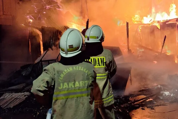 Petugas Damkar berusaha memadamkan kebakaran di Pademangan, Jakarta Utara, Rabu (15/10/2025).  Foto: Dok. Istimewa