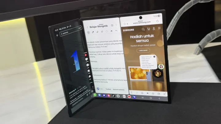 Samsung telah meluncurkan penjualan perdana smartphone layar lipat tiga pertamanya, Galaxy Z TriFold, di Korea Selatan pada 12 Desember 2025. Meskipun belum secara resmi tersedia di Indonesia, media berkesempatan mencoba langsung perangkat tersebut di Jakarta pada Rabu (24/12).
