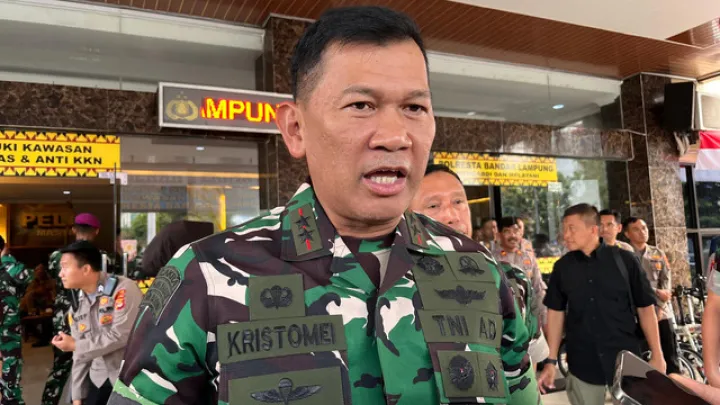 Mayjen TNI Kristomei Sianturi selaku Pangdam XXI/Radin Inten memberikan tanggapan terkait video viral yang memperlihatkan oknum TNI terlibat cekcok dengan warga sipil di wilayah kota Bandar Lampung.