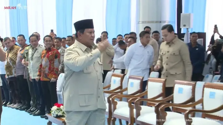 Presiden Prabowo Subianto menghadiri acara penyerahan uang rampasan negara senilai Rp 6,6 triliun yang berasal dari hasil penertiban kawasan hutan. Acara tersebut dilaksanakan di Gedung Bundar Kejaksaan Agung, Jakarta, pada Rabu (24/12).