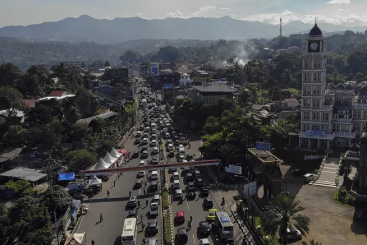 Kawasan Puncak di Bogor, Jawa Barat, mengalami kepadatan kendaraan yang signifikan selama libur Natal pada 25 Desember 2025.