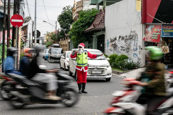Sinterklas Turun ke Jalan Atur Lalu Lintas di Solo