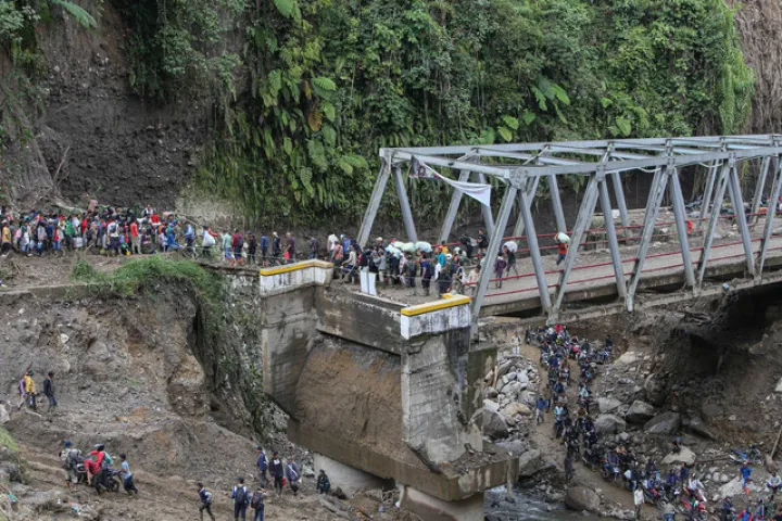 Hingga satu bulan setelah bencana, akses transportasi di kawasan itu belum sepenuhnya normal. Pejalan kaki masih harus menyeberangi sungai melalui jembatan darurat yang kapasitasnya terbatas dan hanya bisa dilalui satu orang dalam satu waktu.
